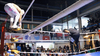 Diving Guillotine Leg Drop into the Ropes